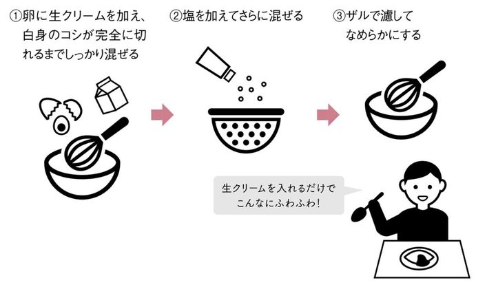 黄色くふわふわになるオムレツをつくるカギは、火加減よりも仕込みにある