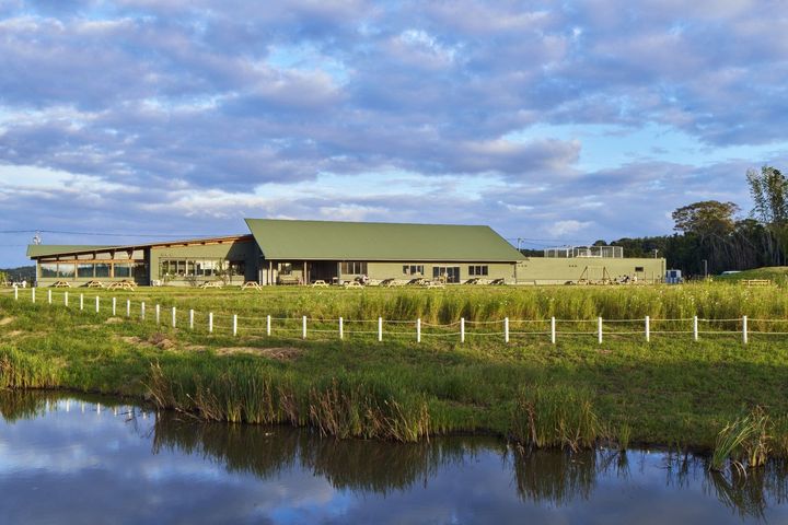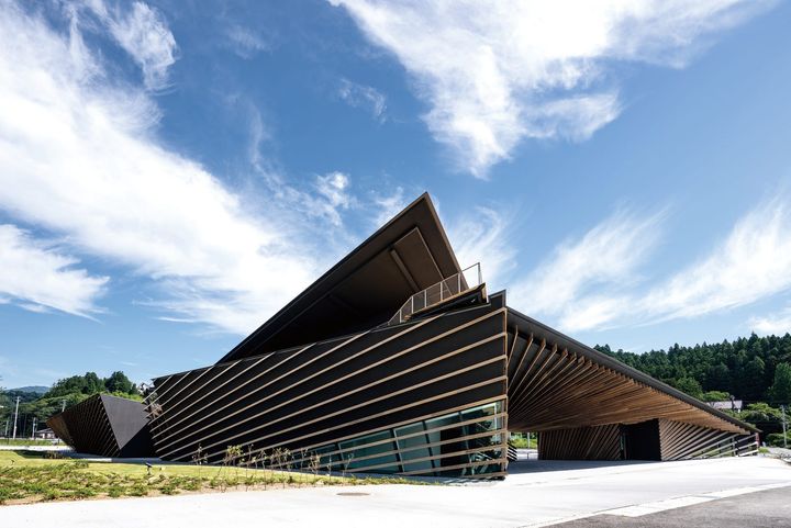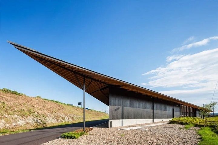 東京からアクセスが良く、年間を通して温暖な千葉県南房総。その最南端の館山にある道の駅が「グリーンファーム館山」。設計は、中村拓志率いるNAP建築設計事務所で、深緑色の美しい外観が目印。