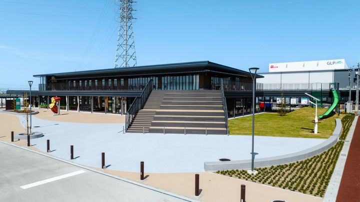 茨城県土浦市を拠点とする株式会社須藤設計が設計を手掛けた「道の駅 常総」は、常総IC周辺に整備された「アグリサイエンスバレー常総」の中核施設。建物のデザインは、周囲の自然と調和するよう水平ラインを基調としながらも、2階に続く大階段がランドマークとしての役目を果たす。さらに、敷地の外周にはあえて柵やフェンスを設けず、隣接する施設との往来がしやすい設計に。
