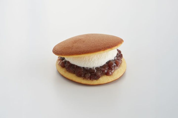 2階のカフェには、藤森照信によって一本一本選ばれた栗材で切り出されたオリジナルデザインのテーブルや椅子、照明が設けられている。ここでは、粒餡と生クリームをはさんだ「生どら(¥390)」や、ふわふわ食感の「どらケーキ」を用意。注文を受けてから職人が手掛けるつくりたては絶品だ。