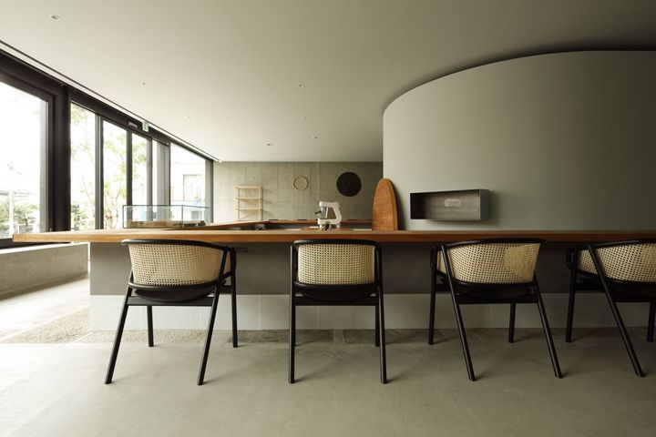 東京オリンピックのサーフィン競技が行われたことでも知られる、サーファーの聖地・千葉県一宮町。その町に佇む「Overview Coffee Ichinomiya」は、月額制で滞在できるセカンドホーム「SANU 2nd Home - 一宮1st」に併設されたベーカリーカフェだ。デザインはPuddleの加藤匡毅によるもので、千葉県産ブランドの「山武杉」をふんだんに使用した建築や、一宮の植栽を取り入れたランドスケープが、地域の自然と心地よく調和している。