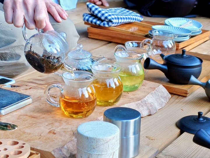 お茶を淹れてくれるのは、日本茶インストラクターでもある佐藤さん。「煎茶・ほうじ茶・和紅茶」の3種類の飲み比べを体験できます。急須から注がれる時は周辺にお茶の香りが豊かに漂って、その香りの強さに参加者からは感嘆の声がもれていました。