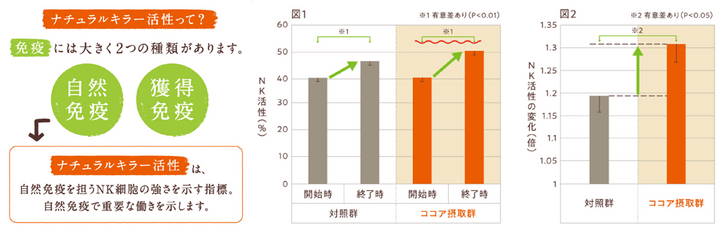 つまり、ココアを摂取したグループの方が、より自然免疫力が高くなったことを示唆しています。