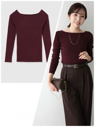 こちらも自宅の洗濯機でお手入れ可能な、シルクカシミアをブレンドした万能ニットシリーズの一枚。大人な抜け感をまとえるボートネックデザインは、絶妙な空き具合。リブならではの伸縮性と、ストレスフリーな着心地も魅力です。