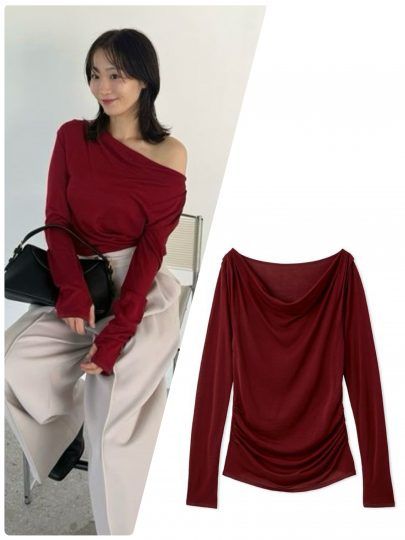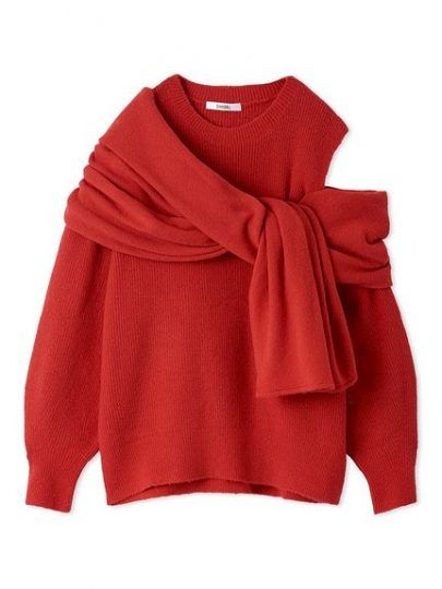 ストールを巻いたようなドッキングデザインが目を惹くニットプルオーバー。1枚でスタイリングが華やかにキマります。左肩だけ開けたアシンメトリーデザインも程よい抜け感を醸します。冬コーデにぴったりな鮮やかなレッドはイチオシのカラー♡