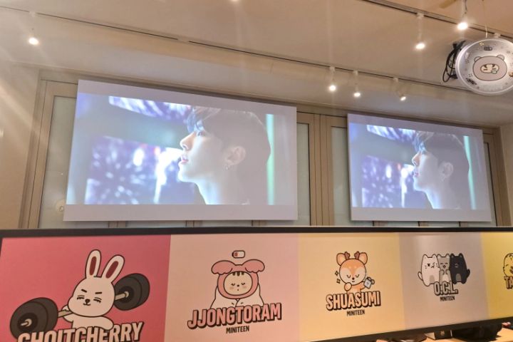 店内では、SEVENTEENのMV「MINITEEN」の映像が流れています。