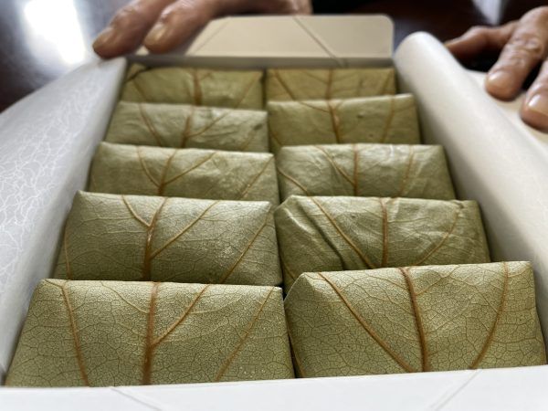 柿の葉ずしはワンハンド。ぜひ購入してすぐ食べてみて