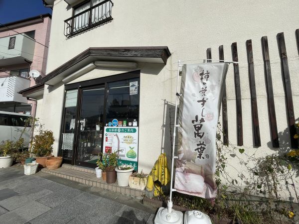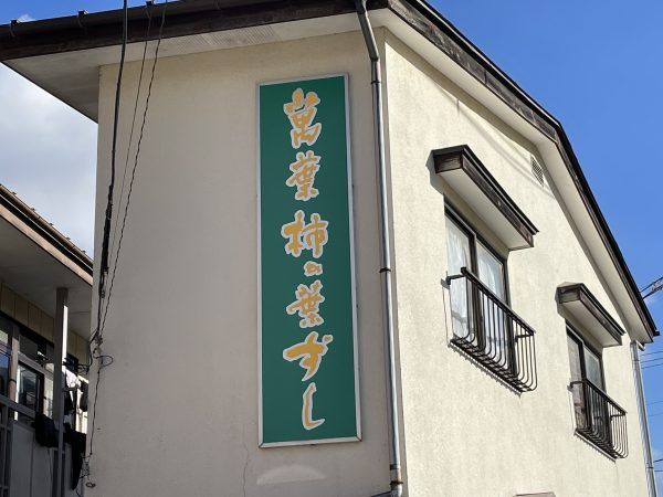 ここがお店。「柿の葉ずし 萬葉」の旗が目印。