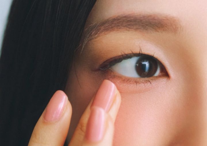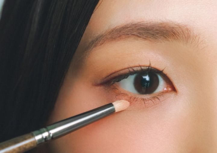 [A]の上2つのカラーを細いブラシで混ぜて、下まぶたに3〜4mm幅でのせる。目の下に薄くカラーを入れることで自然とふっくらとした涙袋に。