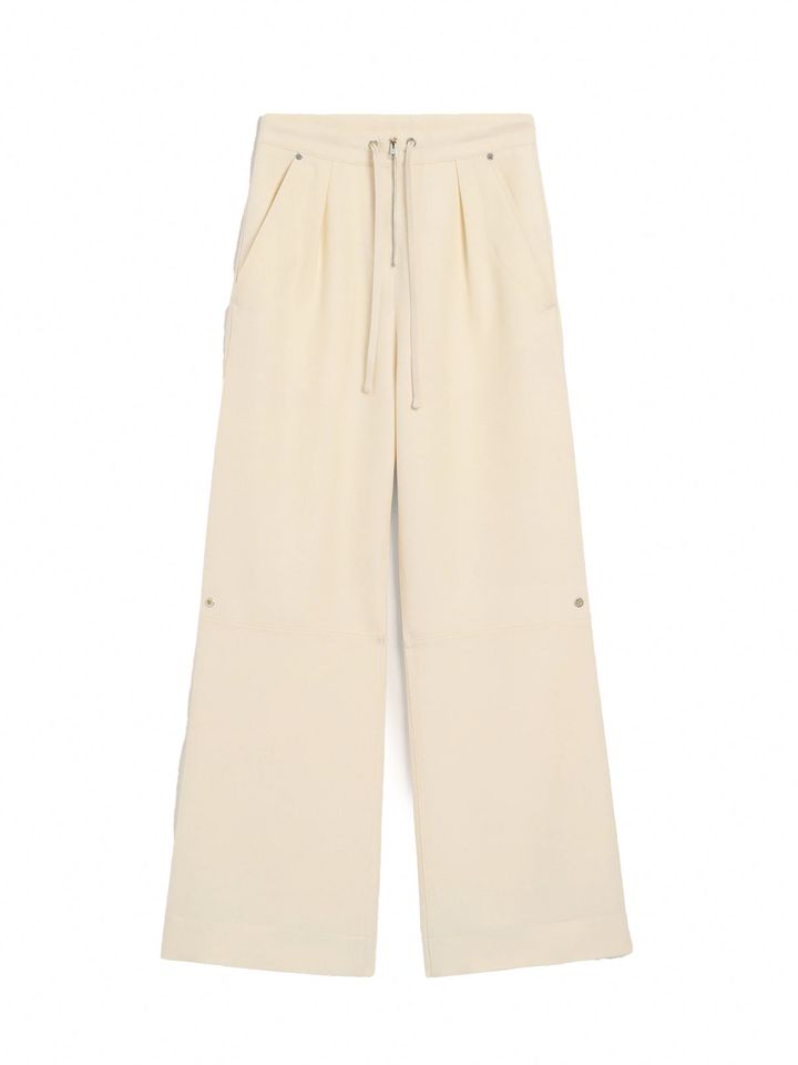 その答えが、移動時間を快適に支えてくれるリラックスパンツだ。締めつけのないウエストや、ゆとりのあるシルエットはストレスフリーな穿き心地を叶えながら、落ち感のある素材や美しいラインを描くフォルムを選べば、装いは自然とシックな印象に。さらに、ベルトレス仕様なら空港での手荷物検査もスムーズ。スニーカーからローファー、フラットシューズまで幅広くマッチし、バカンス中はもちろん日常にもなじむ汎用性の高さも魅力。普段からワードローブにキープしておきたい一本だ。