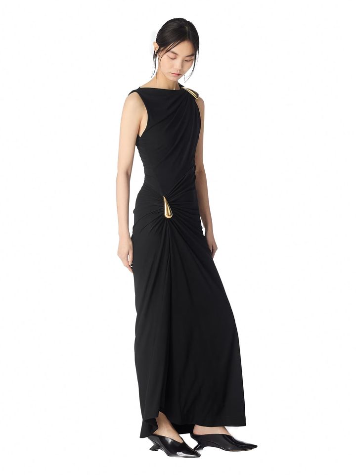 スタイリングのムードは、アクセサリーやバッグ、シューズ、メイク次第で自在にシフト。ドレス自体はミニマルに、スタイリングでモード感を調整するのが、旅先での賢い楽しみ方だ。