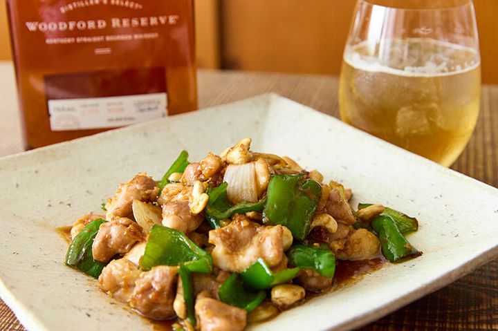 ウイスキーと食べ物の絶妙なペアリングを探索する「ウイスキーと食」企画。ソムリエの若林英司さんと料理研究家の野口真紀さんのコラボレーションによって、斬新でおいしい提案の数々をお届けします。若林さんから野口さんへリクエストした第二弾は「鶏肉のカシューナッツ炒め×ウッドフォードリザーブ&ソーダ」という組み合わせ。ローストしたナッツの香ばしさがウイスキーの旨味を引き立てます。