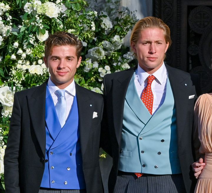 写真は、2024年7月に母マリー=シャンタル王太子妃が主催したパーティーにて、友人(中央)を挟み、コンスタンティノス=アレクシオス王子(右)とアキレアス=アンドレアス王子(左)。