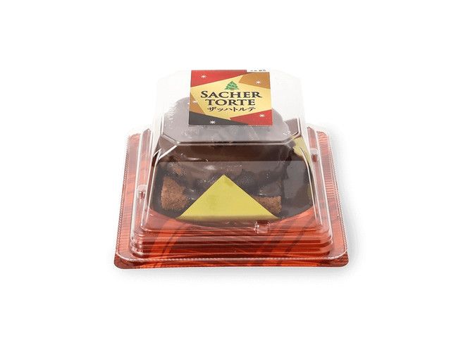 ココアスポンジ、アプリコットジャム、ガトーショコラ、ココアスポンジを重ね、チョコソースとカールチョコをトッピングしました。 カロリー:408kcal 【販売地域】東北・関東・甲信越・北陸・東海・近畿・中国