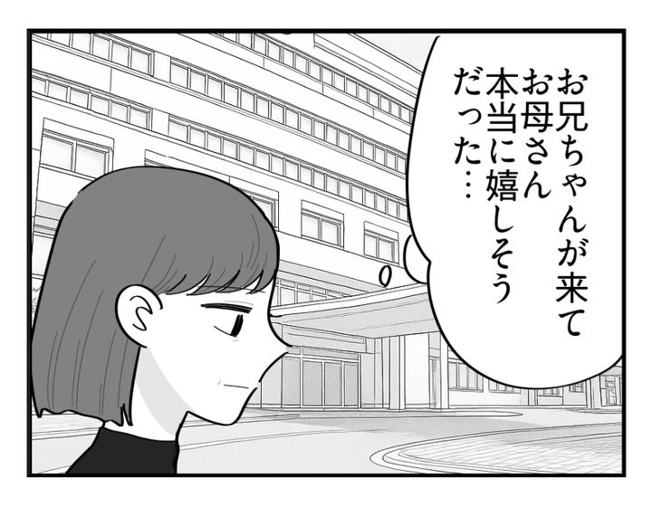 チエさんは先日、近所の実家で倒れているお母さんを発見しました。幸い命に別状はなかったのですが、入院生活は長く続くようです。遠方に住む兄のアツシさんはどこか「他人事」な態度……。10日も経った頃にようやく顔を見せました。そんなアツシさんでも、お義母さんは来てくれたことがとても嬉しいようです。