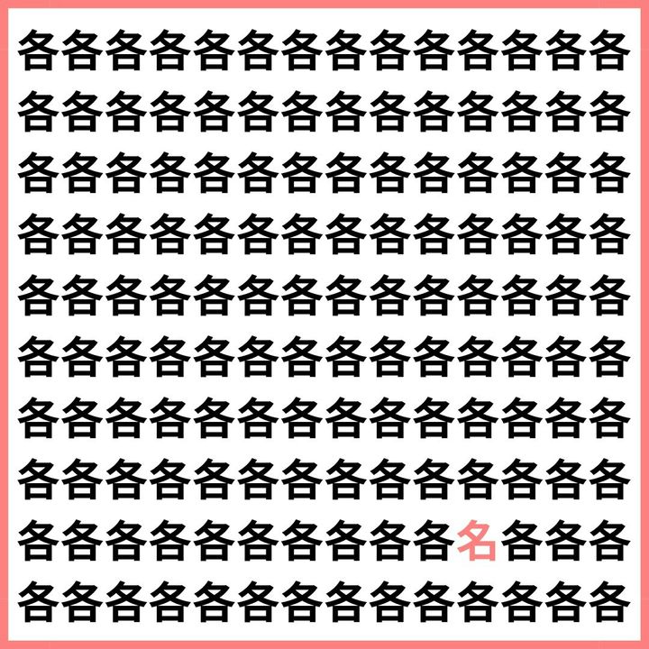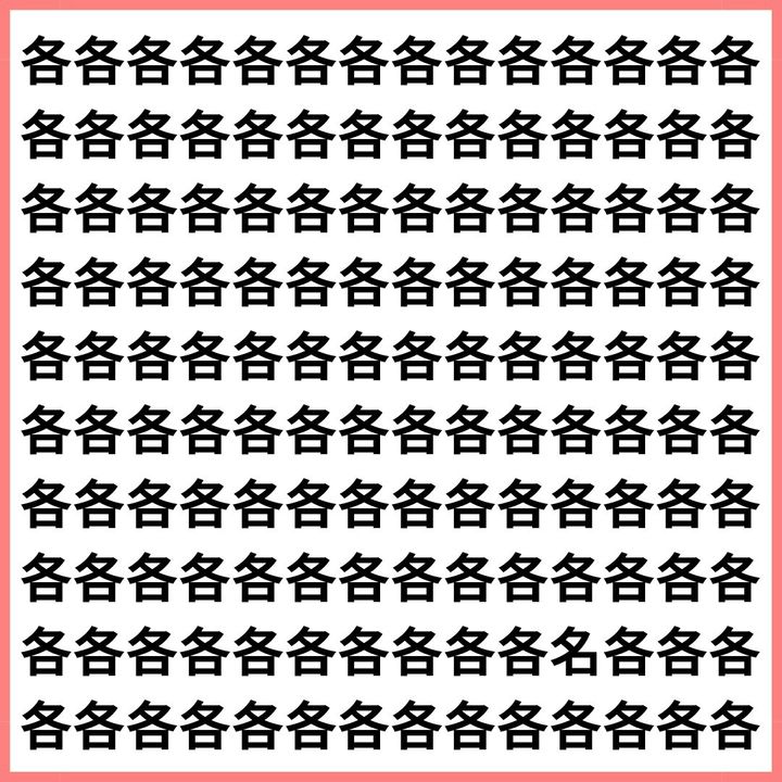 たくさんの「各」の中に、1文字だけ違う漢字が混ざっています。