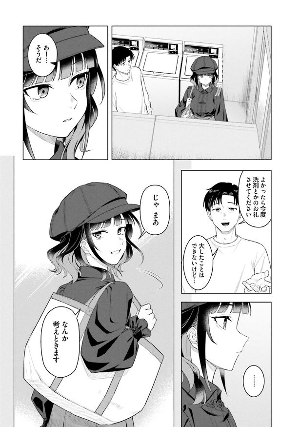 洗濯が終わり帰ろうとすると、思わぬ言葉をかけられ動揺してしまう/今夜コインランドリーで逢いましょう④