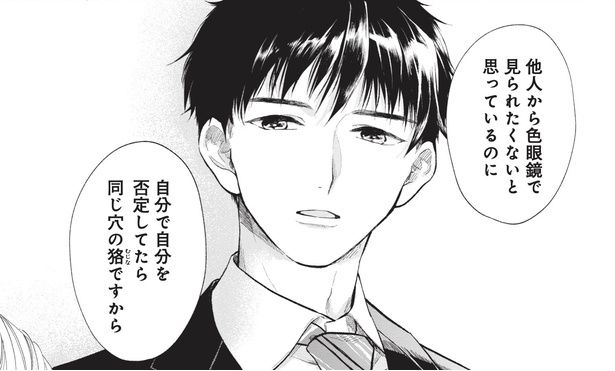 ――岩見は会社の人から愛想がないことを指摘され「男なんだから女に好かれるようにしなさい」と言われますが、それに対して「これが俺です」ときっぱりと返します。そうした強い気持ちでいられる理由を華に問われると「他人から色眼鏡で見られたくないと思っているのに、自分で自分を否定していたら同じ穴の貉ですから」と話しました。この言葉が強く心に残ったのですが、どういった意味が込められていますか?