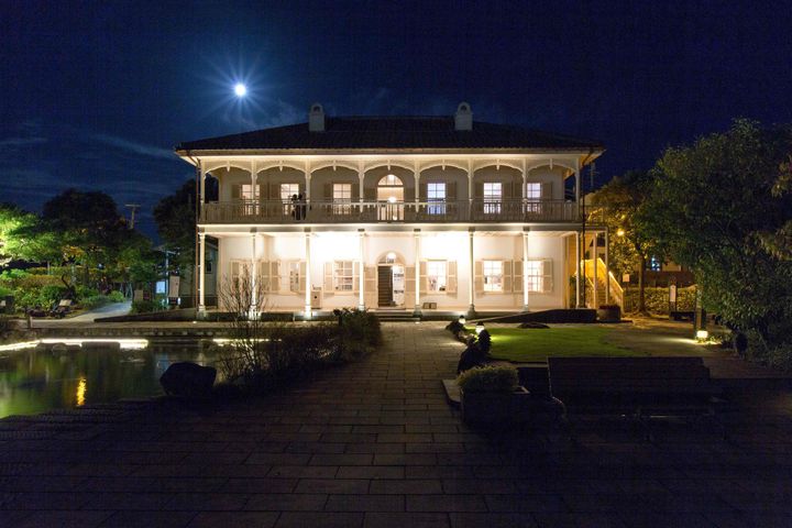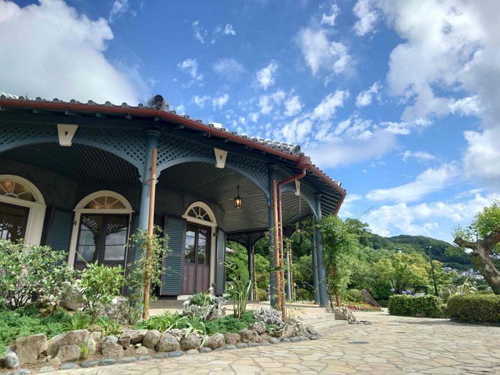 日本に現存する最古の木造洋風建築“旧グラバー住宅”を中心に、数多くの貴重な建築が見学できる。居留地時代に建築され、160年以上この地に立っている建築や長崎市内から移築された建築の9棟が集まっている。写真の“旧グラバー住宅”は、1859年に長崎に来航したスコットランド出身の商人トーマス・グラバーの邸宅として建設された。建物の平面は採光と通風を意識した半円形で、日本瓦や土壁が使用されている。