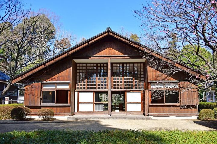 園内には、江戸時代前期から昭和中期まで都内に存在していた建造物がずらり。特に西ゾーンでは、レトロな魅力あふれる住宅や茅葺きの民家などさまざまな建築様式を楽しめる。1942年、品川区上大崎に建てられた前川國男の自邸もそのひとつ。外観は切妻屋根の和風、内部は吹抜けの居間を中心に書斎と寝室を配した シンプルな間取りとなっている。