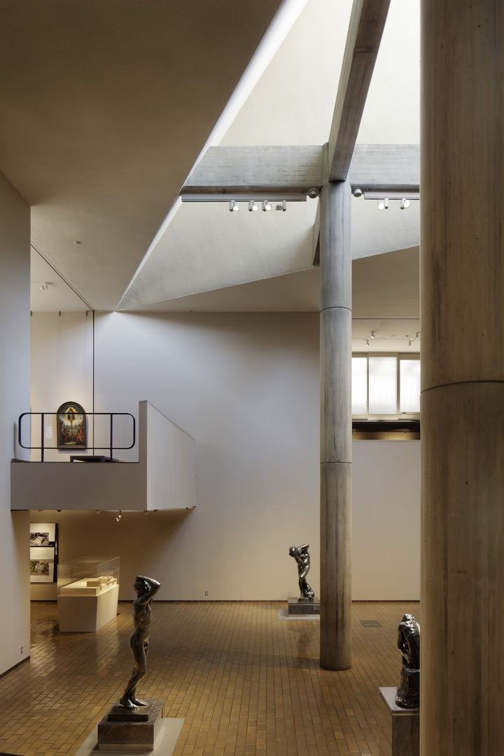 本館中心に位置し、高い天井が印象的な”19世紀ホール”。この名前はル・コルビュジエが名付けた。三角形のトップライトから自然光が差し込むことで柔らかな空間が生まれる。
