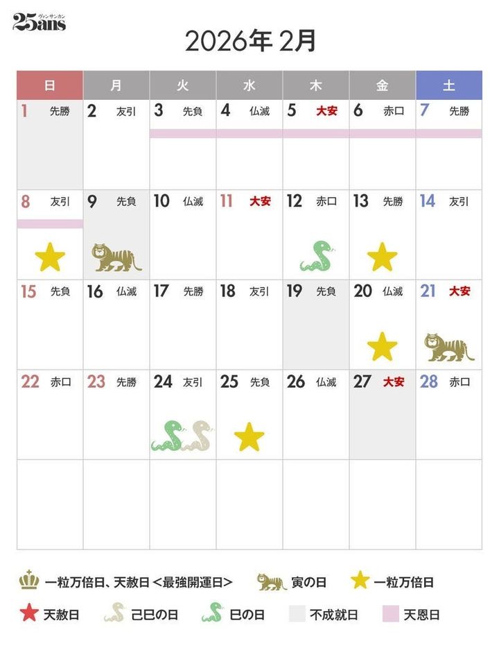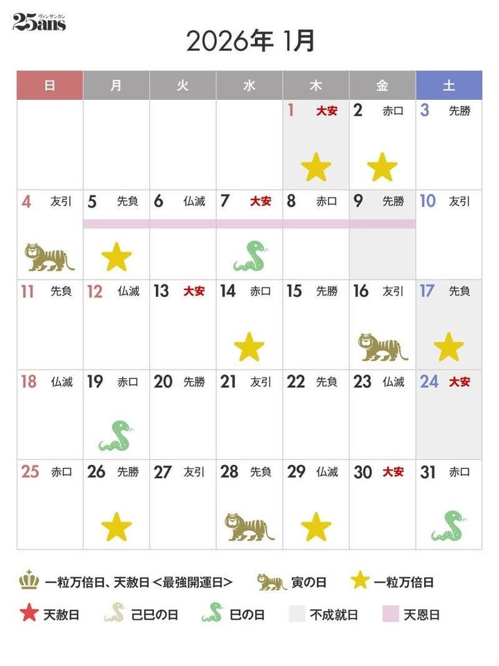 以上を参考に、2026年のラッキーデーの恩恵にあやかると、意外な開運に巡り合うことができるかも!? 身近なことからスタートできるので、ぜひ試してみては?