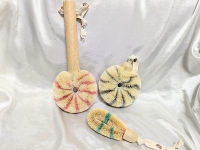 左:ハンドル付ボディたわし、右:ボディたわし、下:かかと用たわし