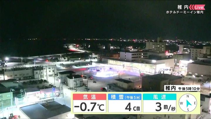 背景は23日午後5時ごろの稚内情報カメラ