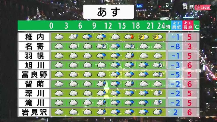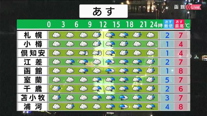・あすの札幌の朝昼晩の天気