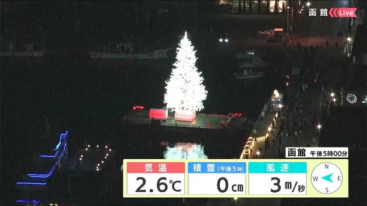 背景は23日午後5時ごろの函館情報カメラ