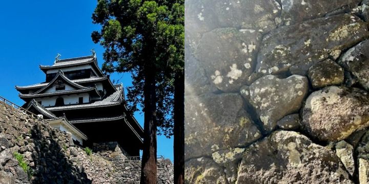 松江城は全国に12城しか残っていない現存天守の一つ。2015年に国宝に指定され、2025年にちょうど10年目を迎えました。写真右は見つけるとよいことがあると噂の石垣のハートの石♡ fujingaho