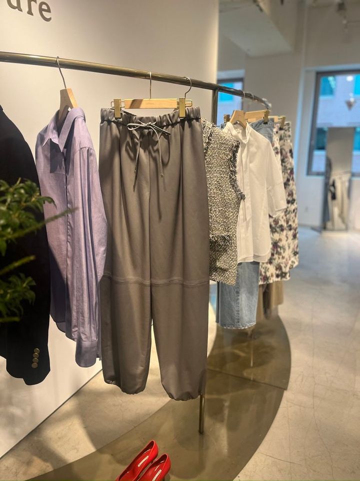 この秋冬は久しぶりにレザーに注目が集まっていますよね。筆者も例年以上にレザーの登場回数が多いように感じますが、その気分は春も継続しているようで【エブール】のレザーパンツにひと目ボレしちゃいました。まず、色が絶妙じゃないですか? そもそもグレー好きってこともありますが、この洗練されたグレーの発色は本当に素敵♡ びっくりするほど柔らかいレザーで、かつ薄手なのではき心地もかなりよさそうです。そして何より、イージーパンツに落とし込んでいるのもツボ。レザーパンツながらもハードになりすぎず、こなれたムードを演出できそう!