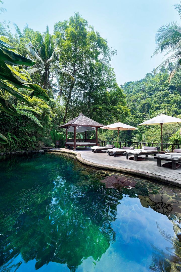 世界に18ある「コモ」のなかでも、唯一そのウェルネスブランドの名を施設名に冠するのがインドネシア・バリ島の「コモ シャンバラ エステート」。ウブドの濃緑の密林に囲まれた約9ヘクタールの広大な敷地に、地元の人々が崇拝する“癒やしの泉”や寺院があります。