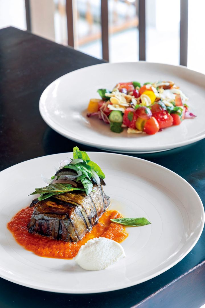 施設内にある2つのレストラン「グロー」と「クドゥス ハウス」の料理に使われる素材のほとんどは、農薬や化学物質を使用していない地元産のもの。メニューにヴィーガンやグルテンフリーなどの表示があり、健康状態や食事法に合わせて選ぶことができる。 撮影=名和真紀子