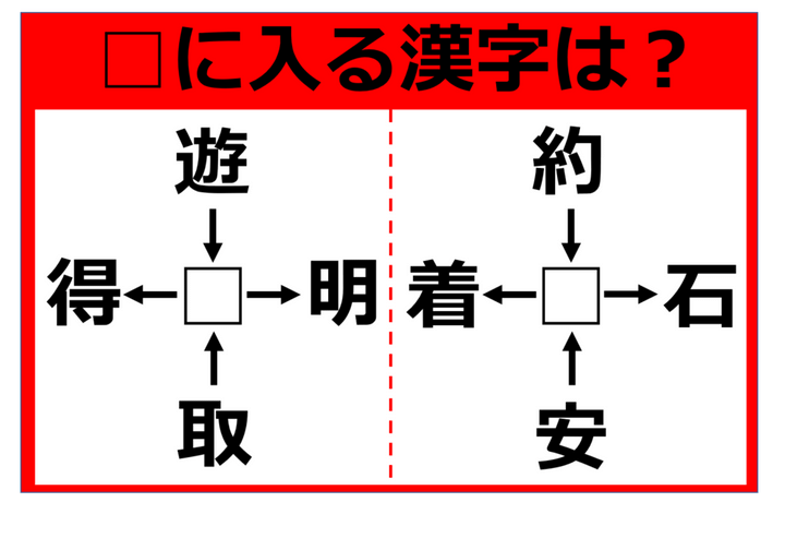 【漢字パズル】遊□、□得、取□、□明 この□に入る漢字を考えてみよう!