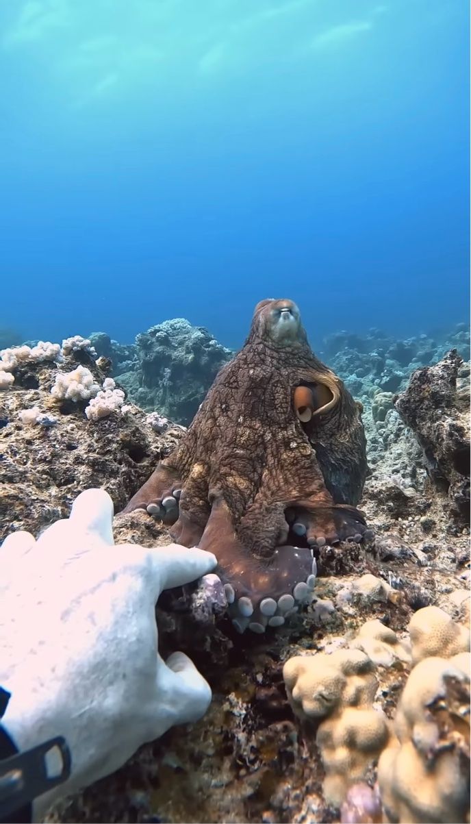 ダイビング中に岩場でタコに遭遇したダイバー。 そっと指を差し出してみたところ・・・思いがけない反応が返ってきました!
