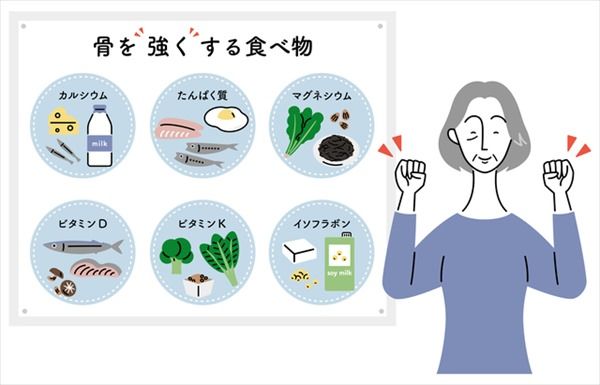 また、骨を丈夫に保つには、食生活も重要です。骨をつくる材料となるカルシウム、ビタミンD、ビタミンKを多く含む食品を意識して摂るようにしましょう。