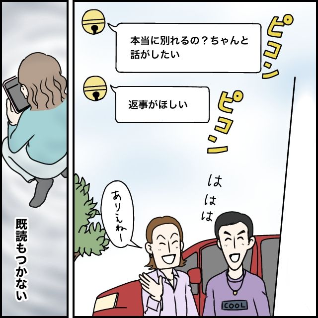 こんな別れ方、納得いかない。そう思った私は「本当に別れるの?ちゃんと話がしたい」「返事がほしい」とタカシにメッセージを送りました。しかし、友達との旅行を満喫しているのか、既読すらつきませんでした。