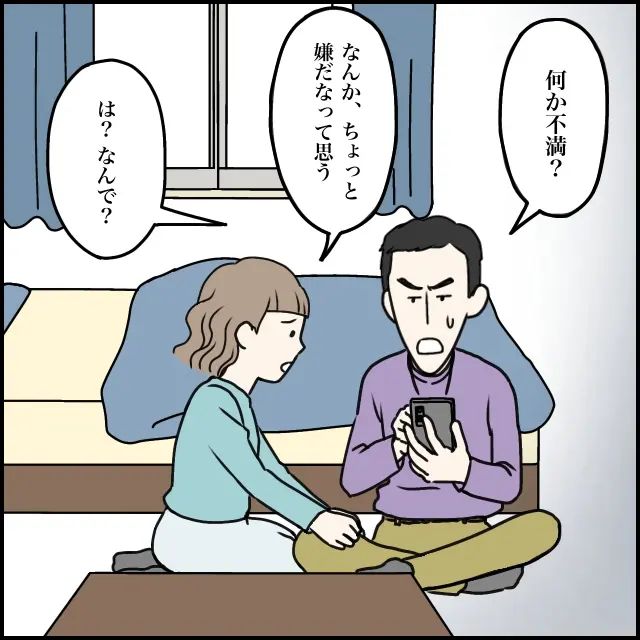「何か不満?」眉をひそめて聞いてくるタカシに、私は勇気を出して「なんか、ちょっと嫌だなって思う」と正直な気持ちを伝えました。彼女がいるのに、他の女性も一緒の泊まり旅行。大学時代からの友達でも不安になるのは当然です。しかしその思いは届かず、タカシは「は? なんで?」とあからさまに不機嫌な表情を浮かべました。