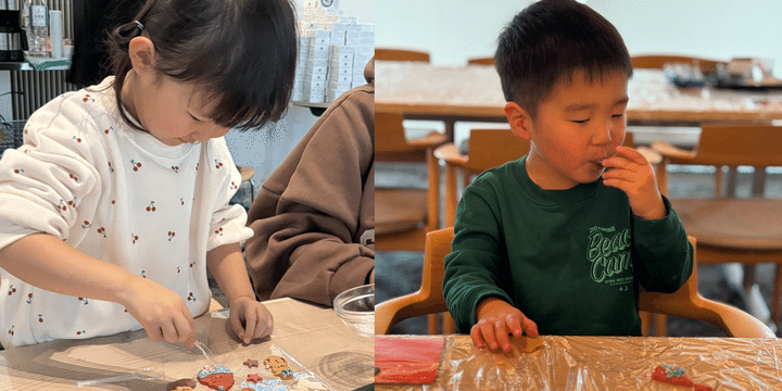 お菓子の家づくりは事前予約で満員御礼となっており、当日キャンセルが出た場合のご案内となりますが、「おえかきクッキー」は当日参加もOK!