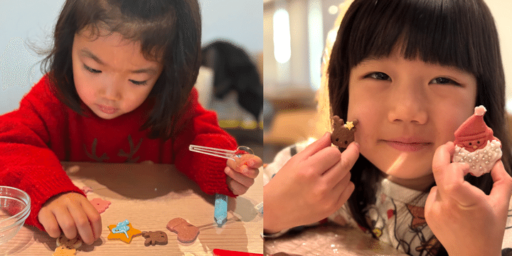 ツリーやスノーマンにアイシングをのせて、アラザンや星などのトッピングをぱらり。