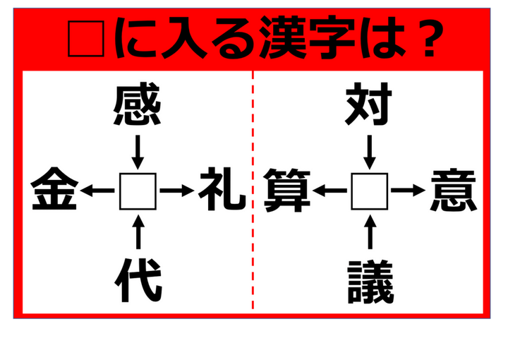【漢字クロスワードパズル】感□、□礼、代□、□金 この□に入る漢字は何!?