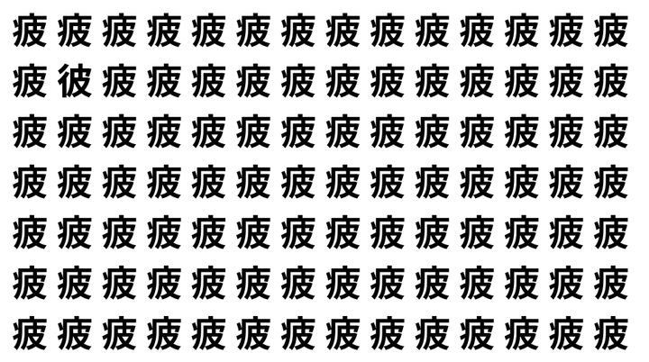 たくさんの「疲」の中に、よく似た別の漢字が1文字だけ隠れています。
