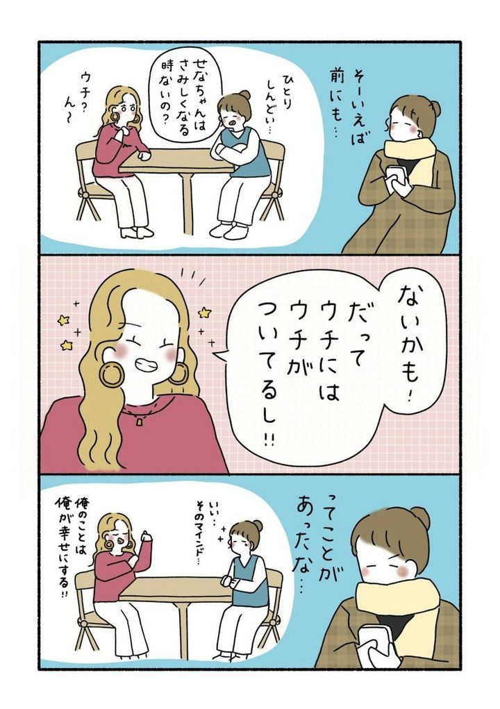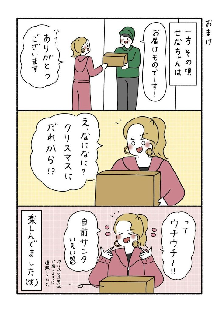 クリスマスに予定がないことに落ち込んでいたゆいちゃん。ギャルマインドを持つ友人・せなちゃんの「ウチにはウチがついてるし!」という言葉を思い出し、1人の時間を楽しむ姿に勇気づけられました。反対に1人の時間が楽しみになってしまいそうですね!