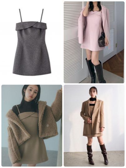 ミニワンピースならロングブーツをはくだけでサマになるし、コーディネートを組む心配もなし♪