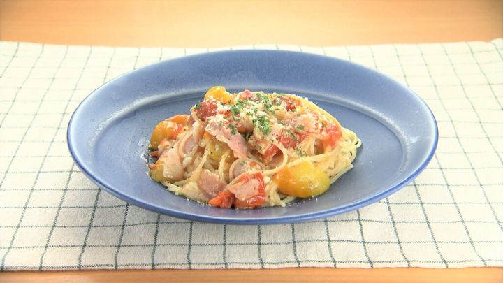 この週は特別企画「出張!DAIGOも台所in八代」と題し、熊本県八代市から、地元のおいしい食材を使ったメニューを紹介。最終日となるこの日は、八代産のミニトマトがたっぷりの、フライパンひとつでできるお手軽パスタ「ミニトマトたっぷりワンパンパスタ」を作った。