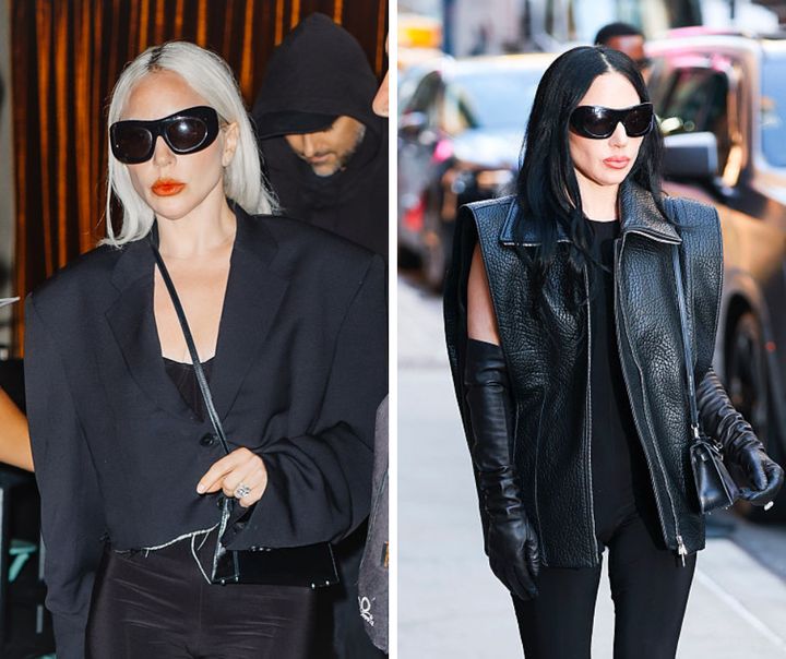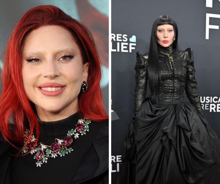 プラチナホワイトのバングに赤リップがベストマッチだったガガが、今度は一転ブラックヘアへチェンジ。