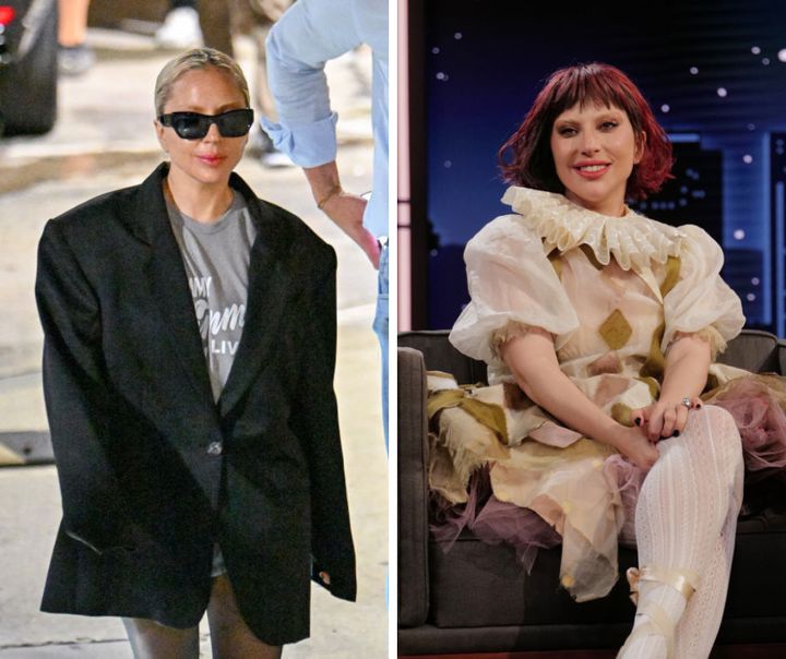 ヘアスタイルもTPOに合わせてチェンジするガガ。ビッグシルエットのジャケットにはタイトなブロンドヘアで合わせ、デザインのある個性的なスタイルには、レッドヘア+バングスでアピール。