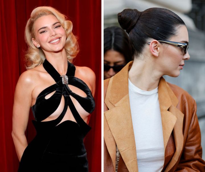 マリリン・モンロー風のブロンドヘアが新鮮だったケンダルだけど、いつもの黒髪ヘアに。クリーンかつタイトなシニョンスタイルは、無造作に見えて高さやフォルムも計算されていてさすが。