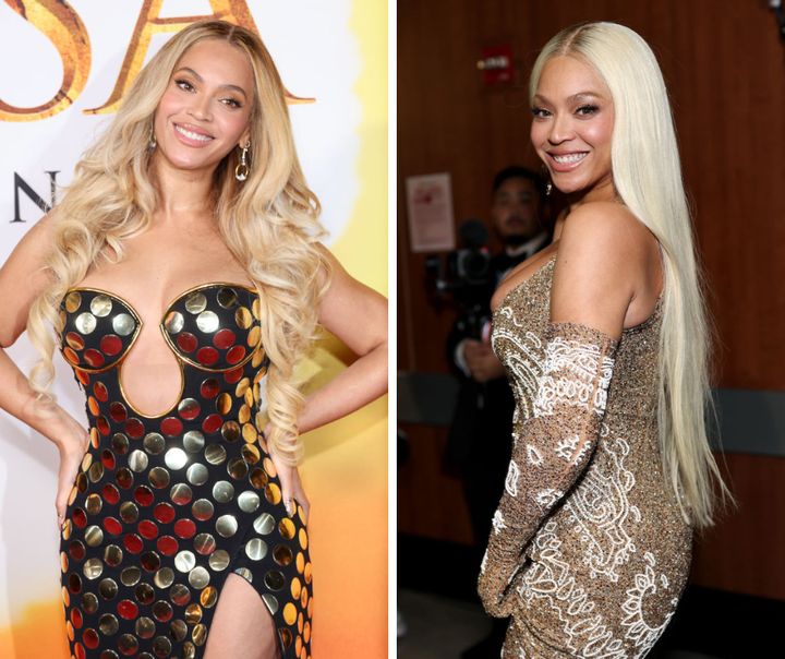 ゴージャスなオーラを放つビヨンセは、スーパーストレートヘアに。そぎ落とされたスタイルが洗練されたムード。